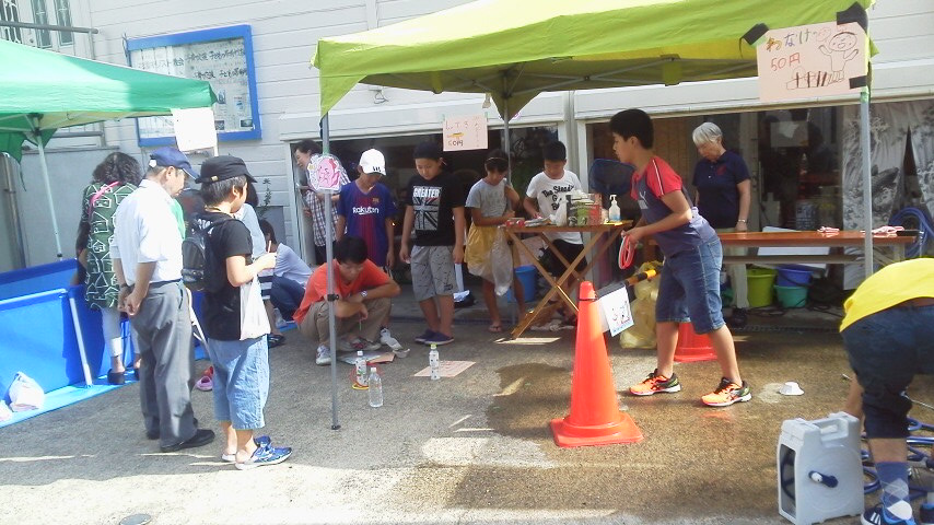 景品もよかった事もありますが、大人・子ども・幼児の投げる場所の位置を変えてチャレンジできるところがうけたようです。