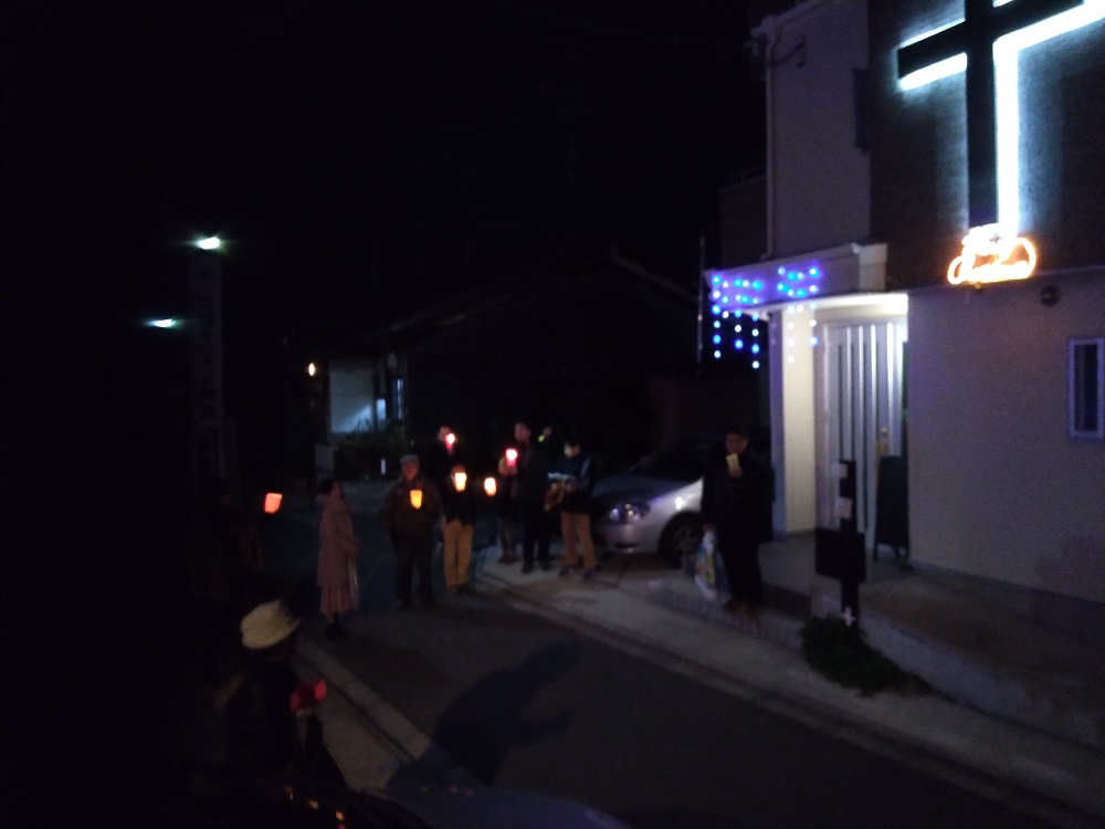 今年のクリスマスキャンドルサービスには初めて教会に来たという方が多数来られ、一緒に地域を讃美歌歌って歩いたり、カレー食べたり・ケーキ食べたりととても嬉しい時が与えられました。
