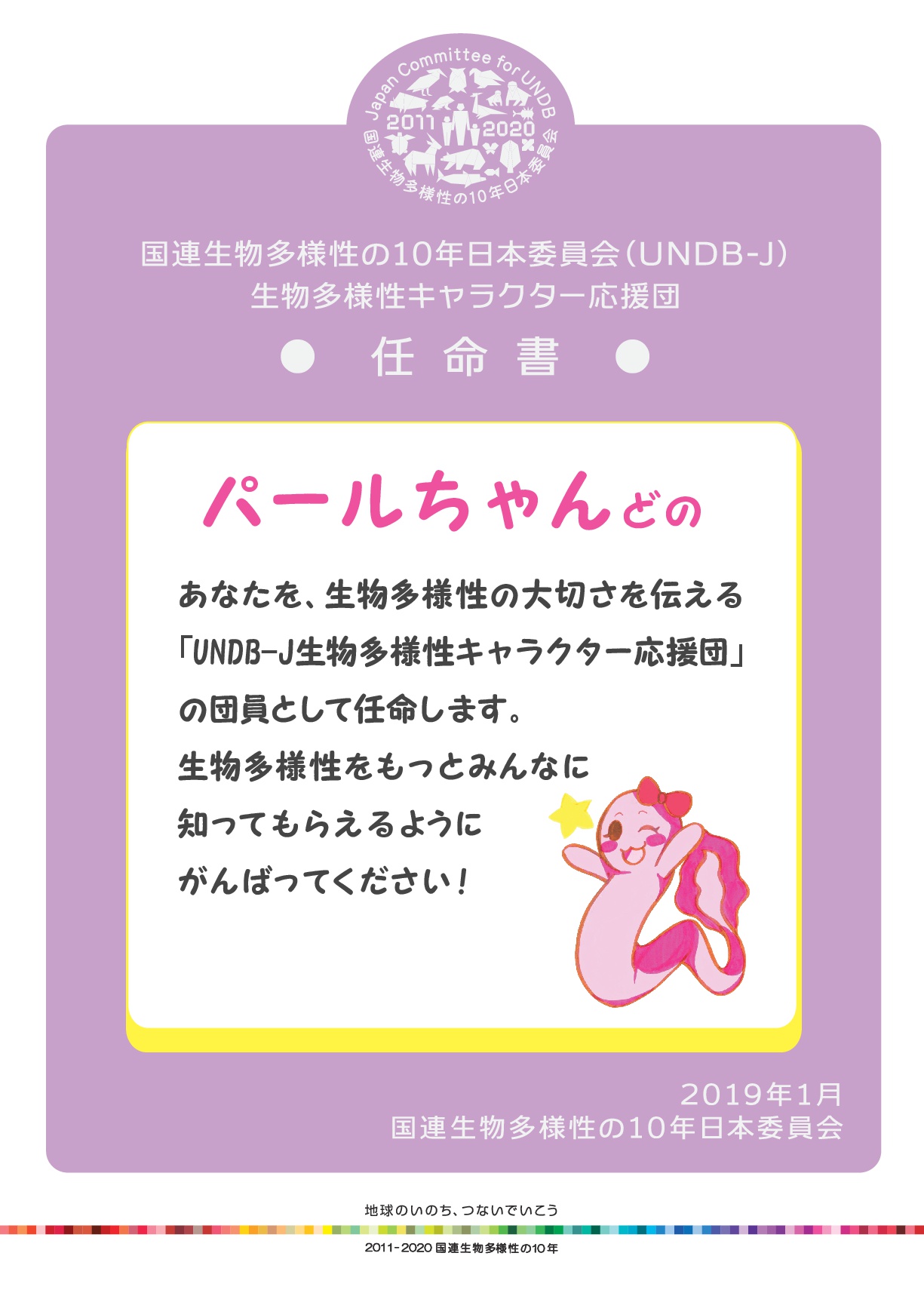 『生物多様性キャラクター応援団』の一員に任命されました!