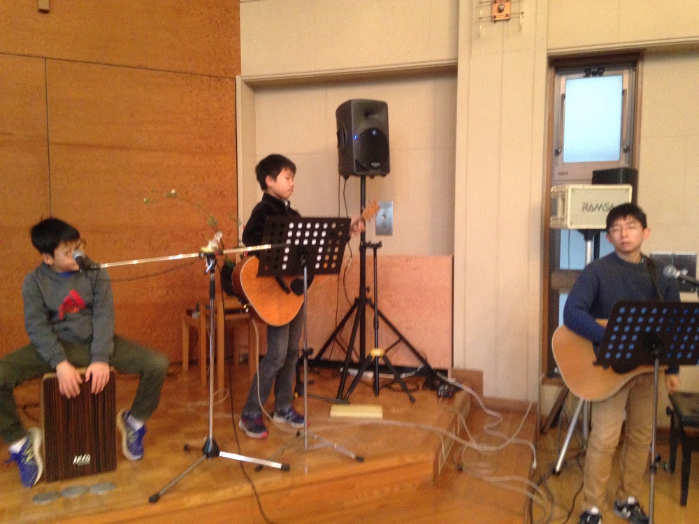 ピアノ、ギター、カフォンのまだまだ小さいバンドですが、とても力強く演奏してくれました。