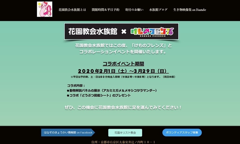 この度、花園教会水族館は「けものフレンズプロジェクト」とコラボする事となりました!