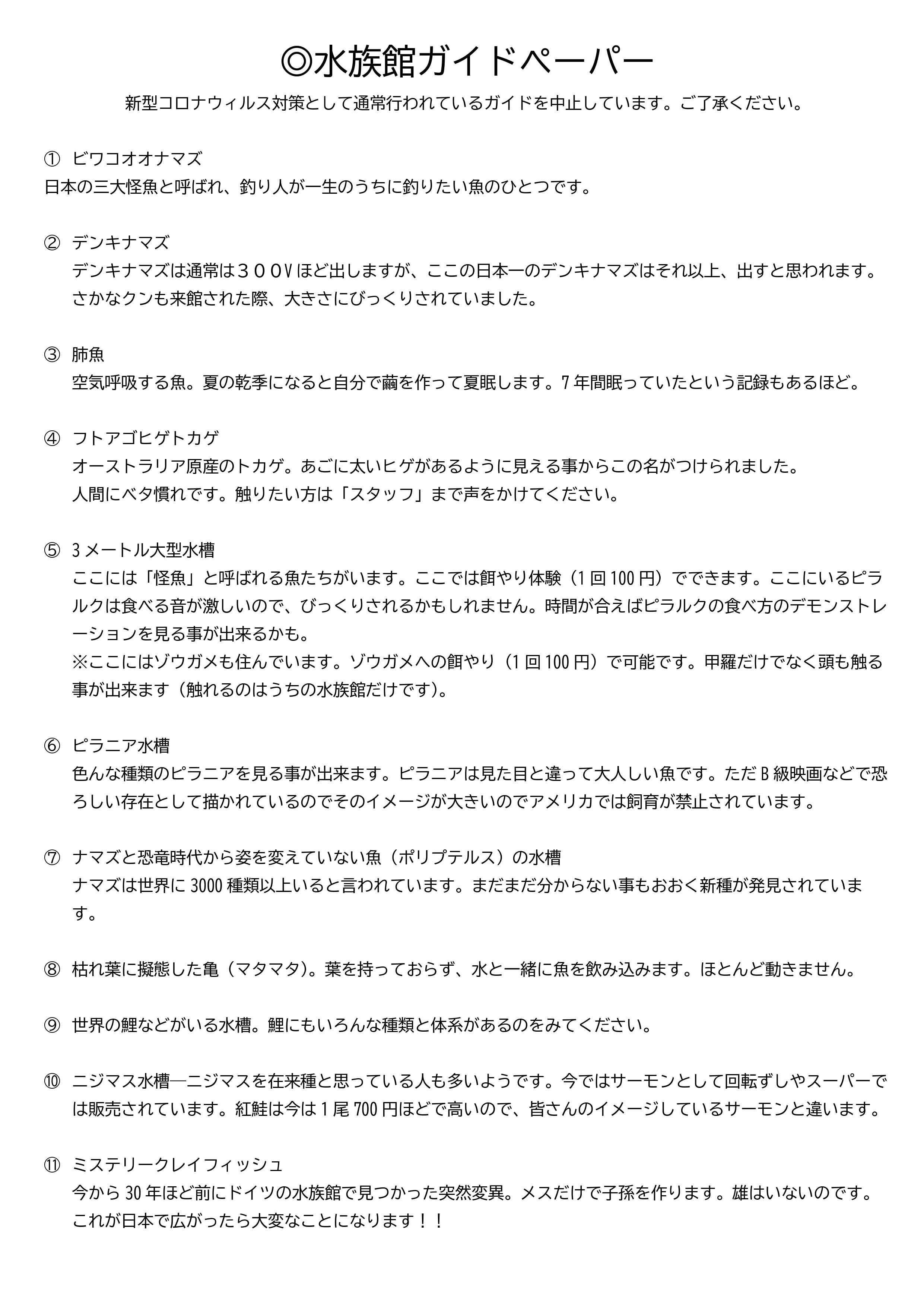 水族館ガイドは明日より当分の間、中止させていただきます。