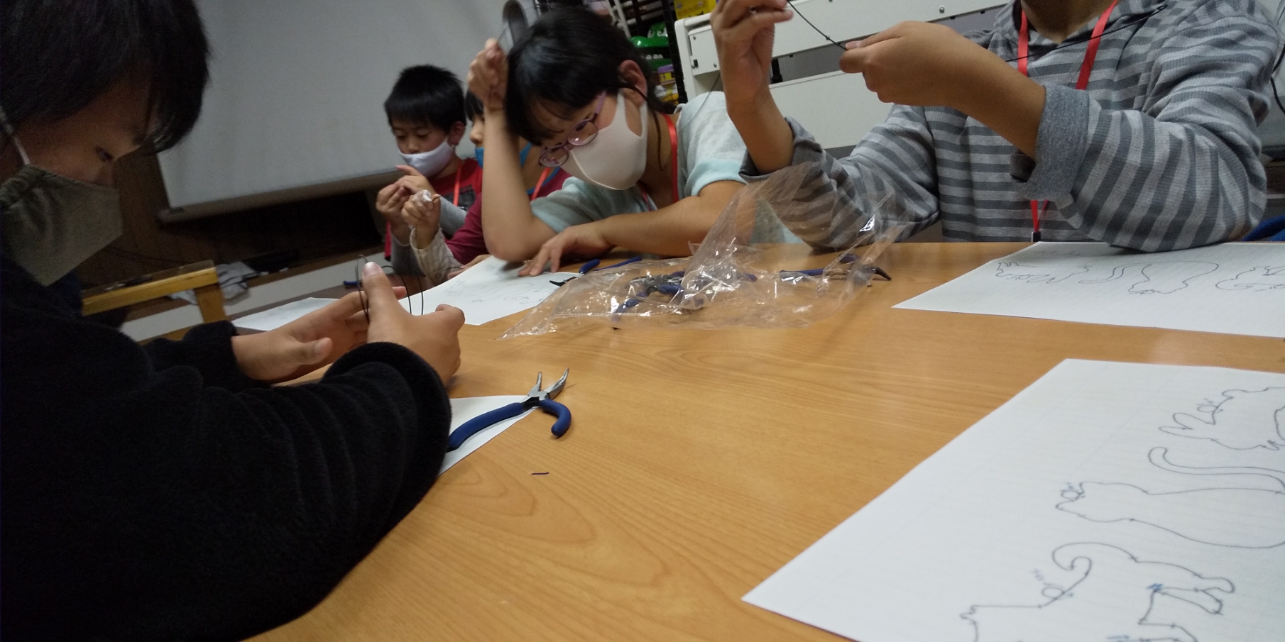 図面にかかれた絵にワイヤーをあてながら作っていきます。