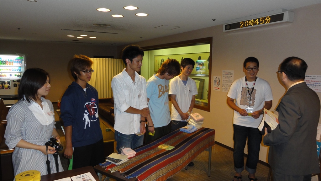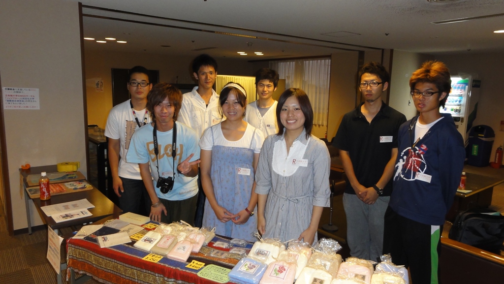 NGO「ソルト」のタオルを販売する同志社・立命館大学の学生達が集い、
