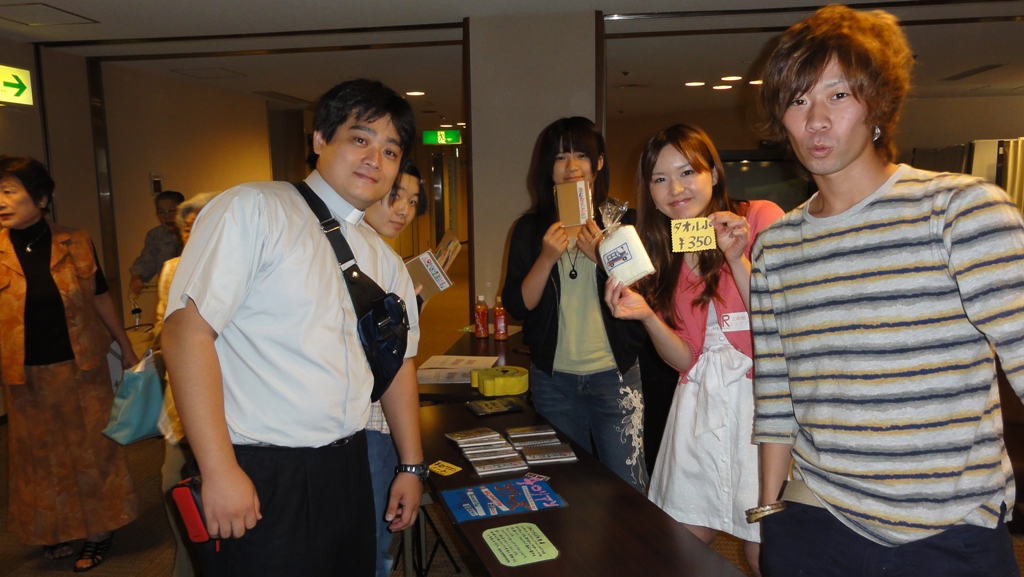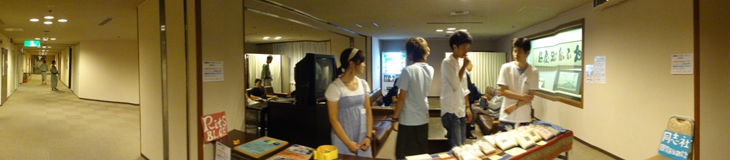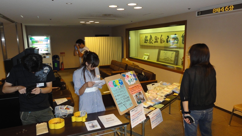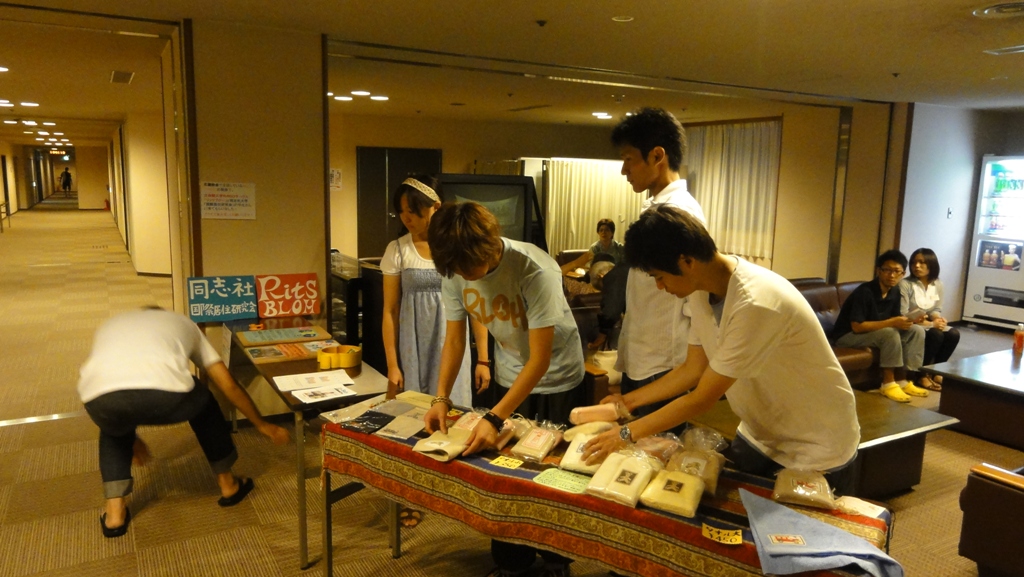 同志社&立命館の学生たちが商品を売っているロビーに続き、