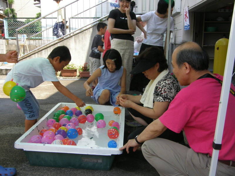 花園フェスティバルでは、輪投げやダーツ、ゴム鉄砲、カキ氷やヨーヨー釣りなどの昔ながらの遊びと任天堂ゲーム機Wiiを使ったホームラン大会が行われました。