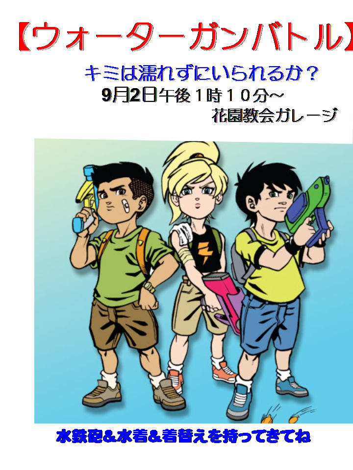 今日は、礼拝後、子ども達と水鉄砲祭りを行いました。