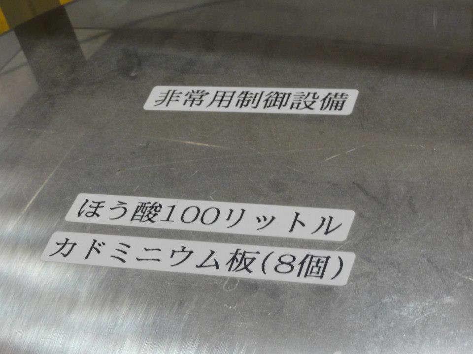原子炉を最後に止めるのはやっぱり人なんですね。。ホウ酸を入れて核分裂をとめます。そのときに使うホウ酸が入っている寸胴。