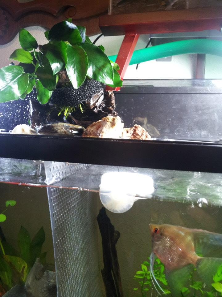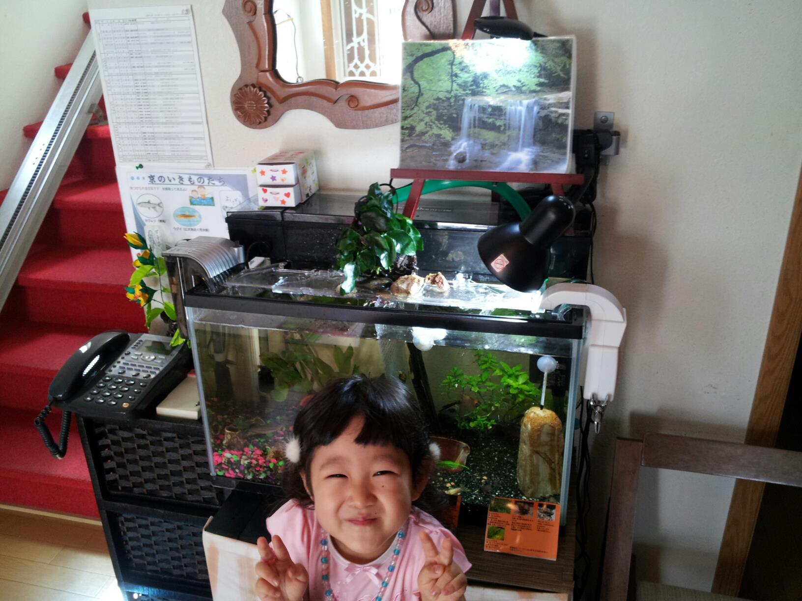 グラグラして石が水槽に落ちてしまいました。