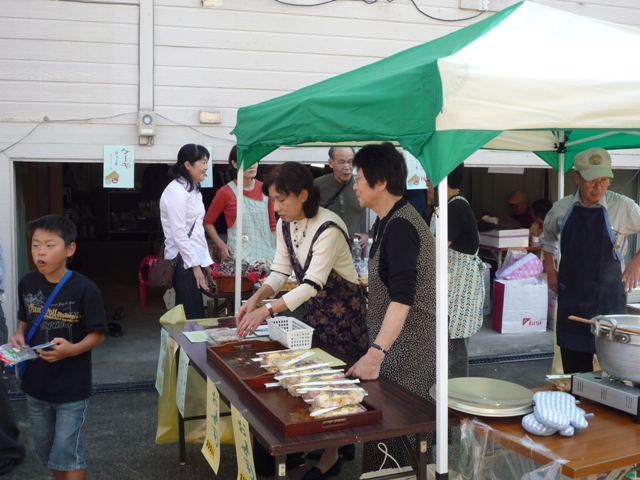 さあ、はじまったバザー。どんどんおでん、ちりめん、やきそばが売れていきます。