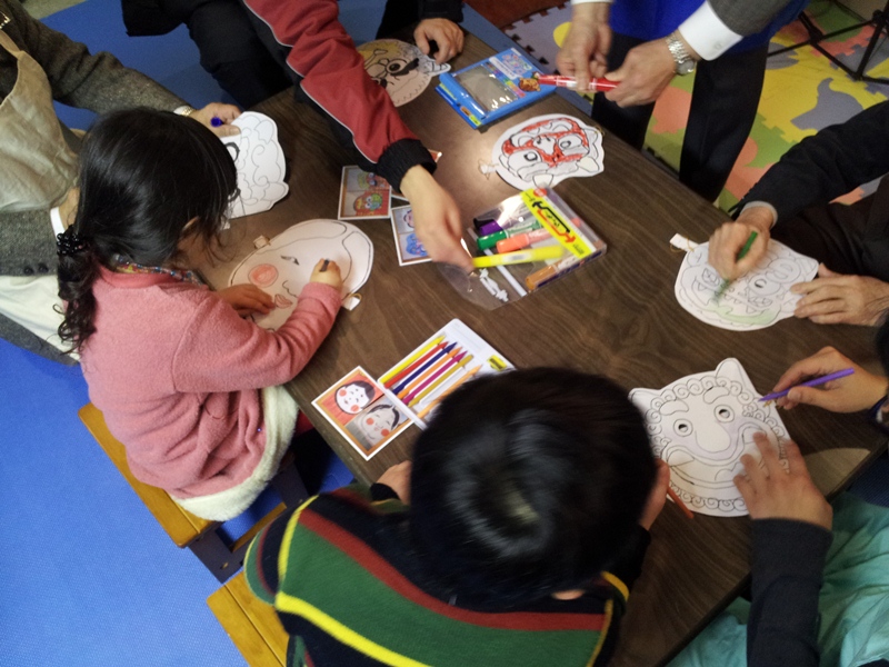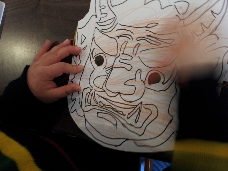 みんなでお面を作って、
