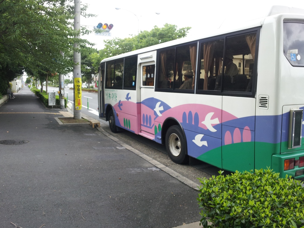 いつもの教会を抜け出して、貸し切りバスを借りて、研修会場へ!