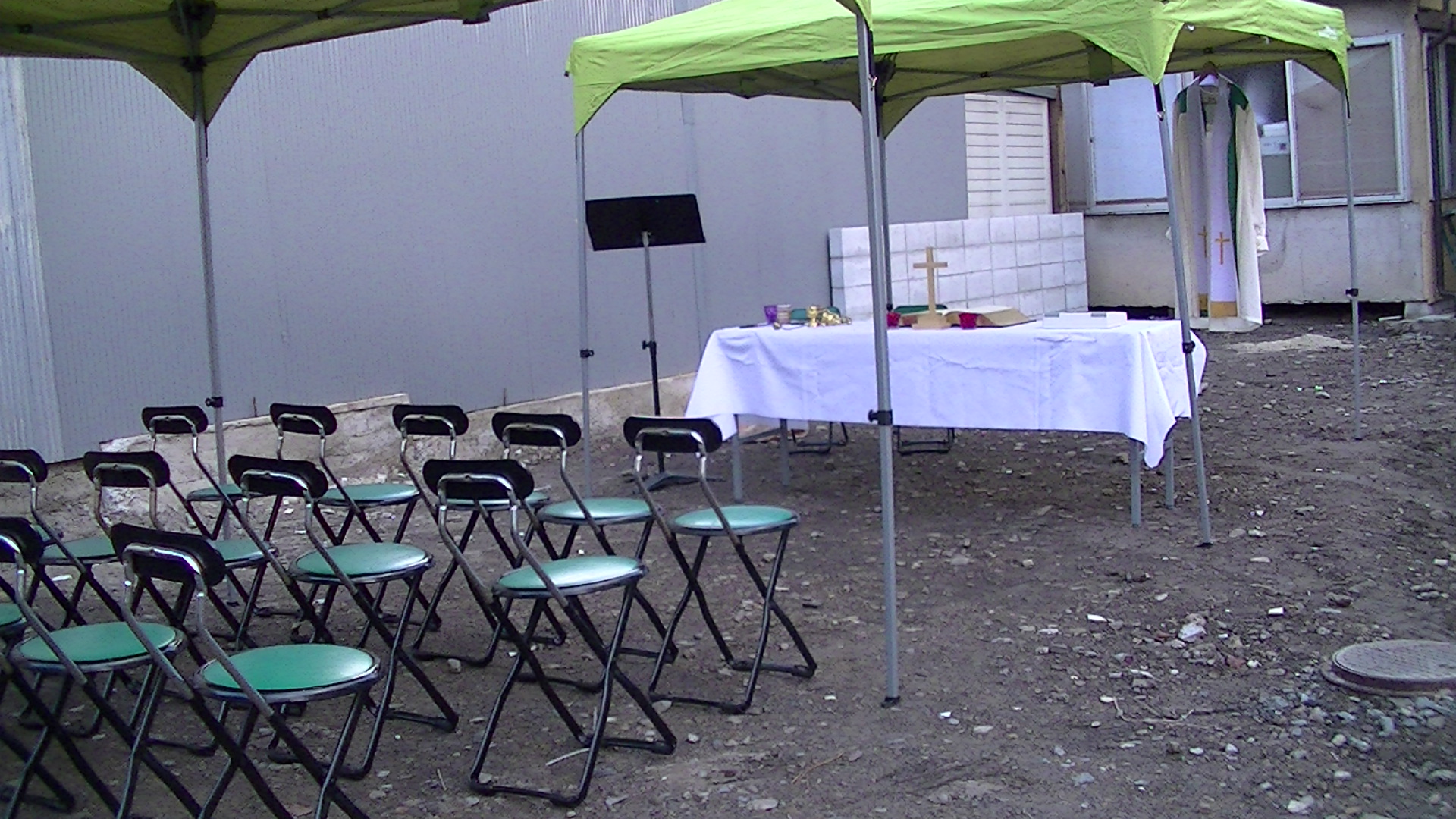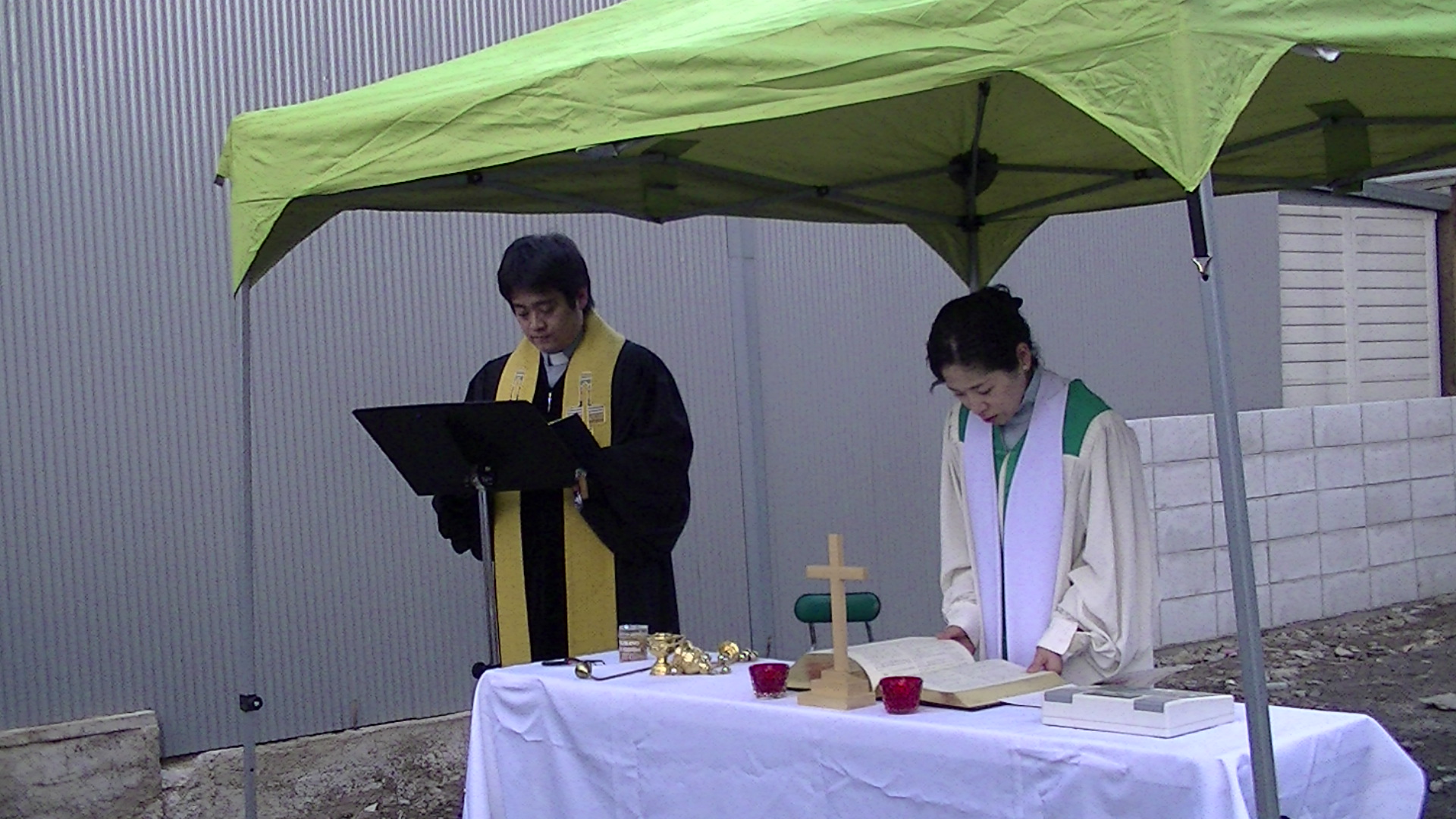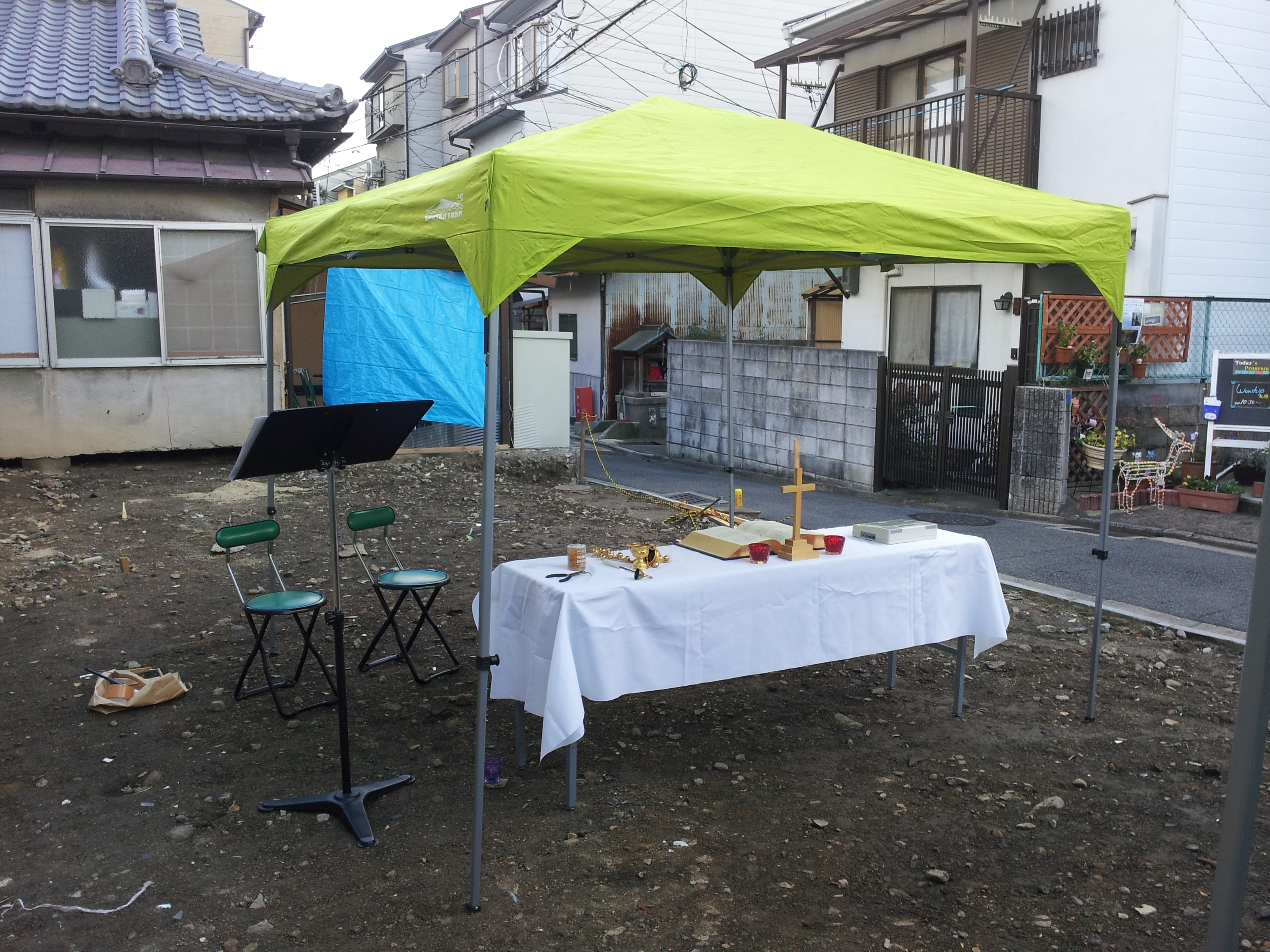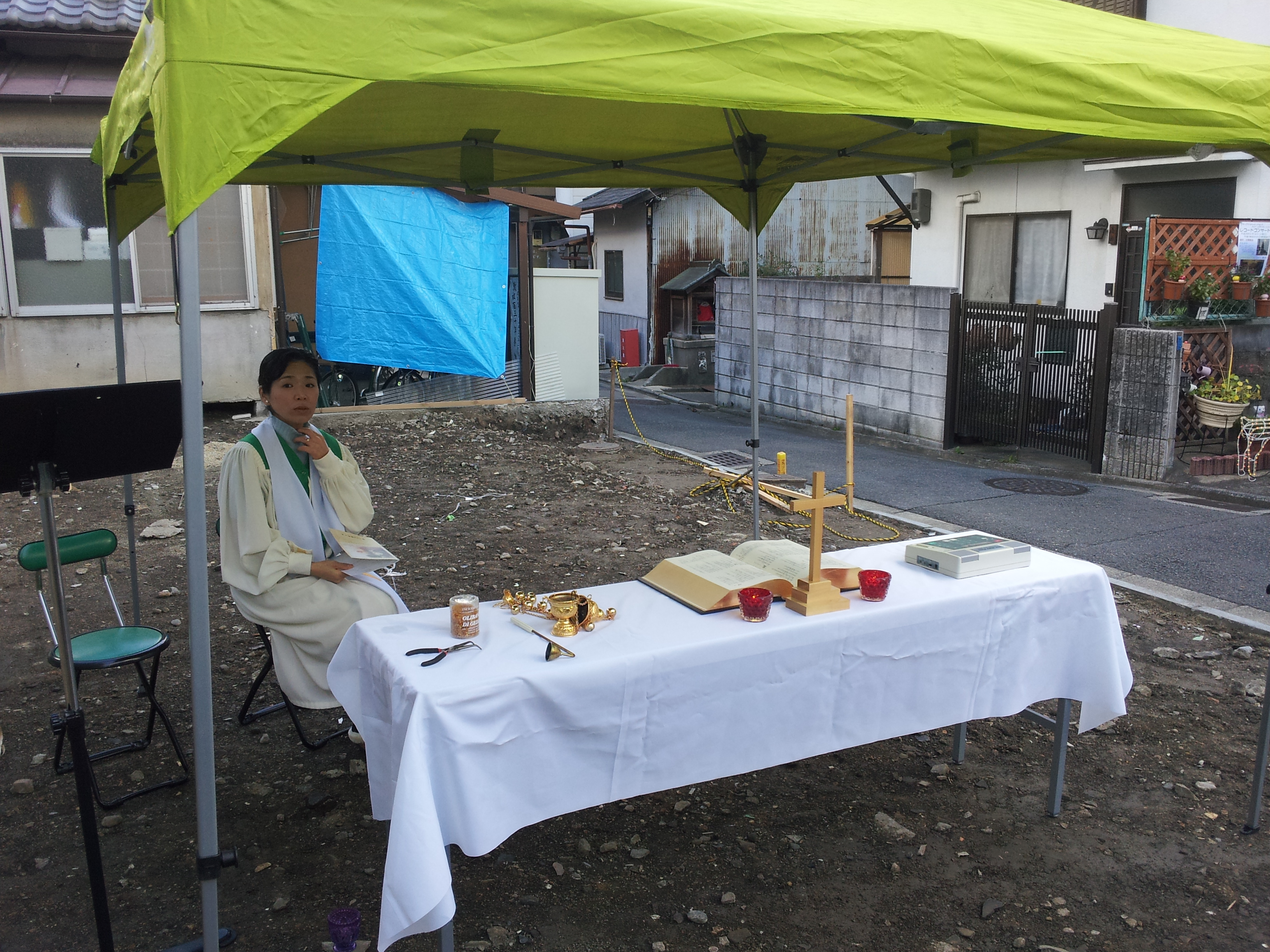 本日昼食後、聖パウロ館の起工式が教会員・工事関係者を集めて