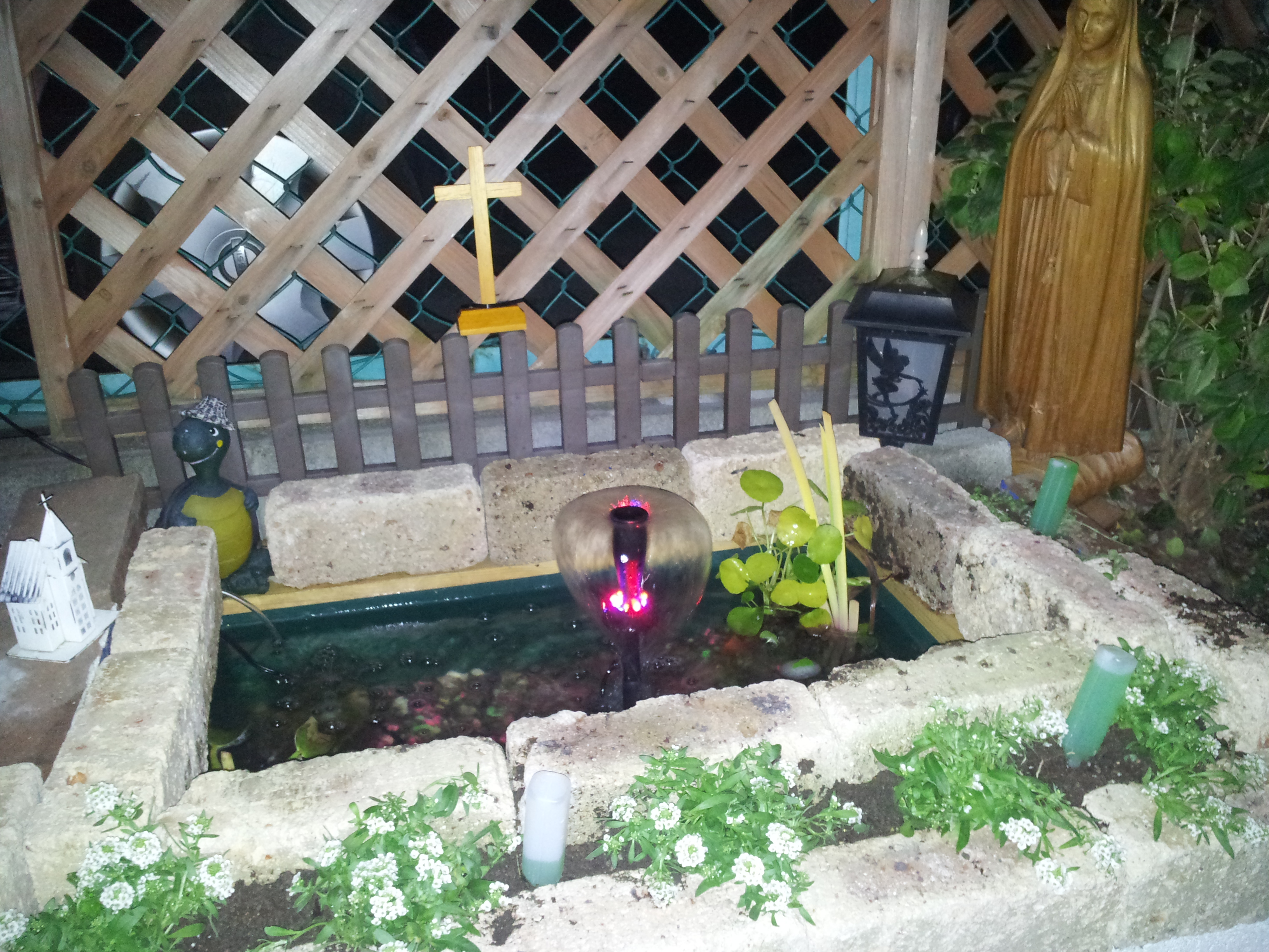 と見知らぬ方から預かり、捨てるわけにもいかず、倉庫に眠っていたマリア像を出してきて右隅に設置。