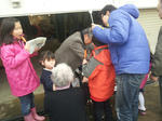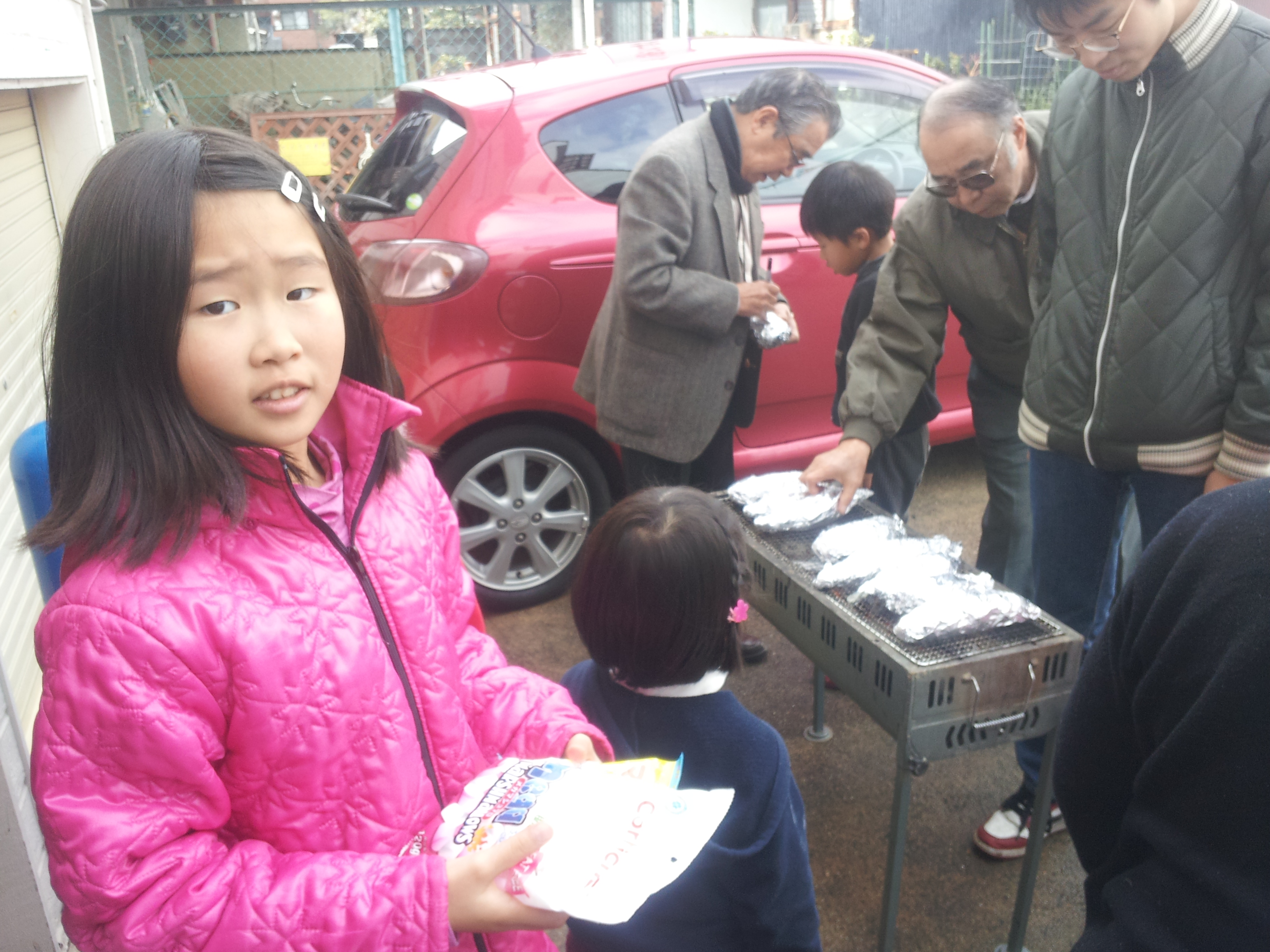 花園教会では粉雪が舞う中、暖も取れる焼き芋作りをしました。