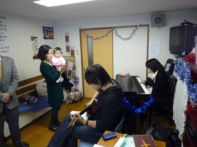 現在、教会学校では来週のクリスマス祝会のWii musicを使った曲の練習をしています。