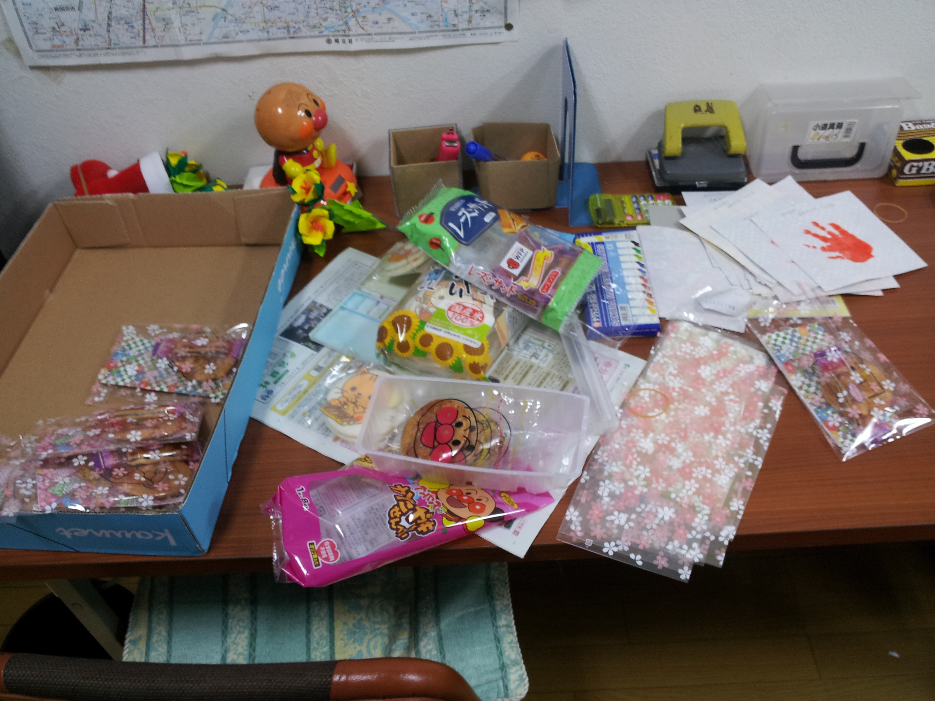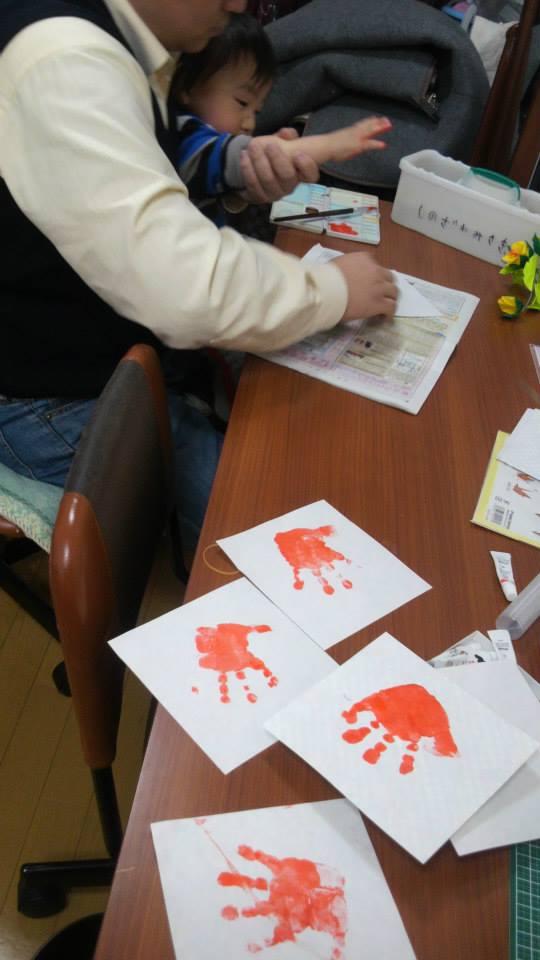 中身は、1歳にして初の奉仕をしたケントくんの手形とメッセージカード&お菓子。