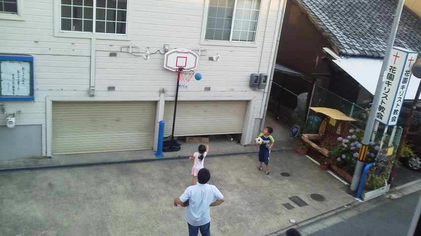 花園教会の駐車場は3on3するにはなかなかいいサイズ。