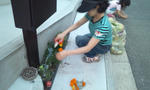 こんなコンクリートジャングルに囲まれた小さな花壇スペースに