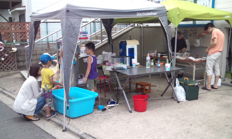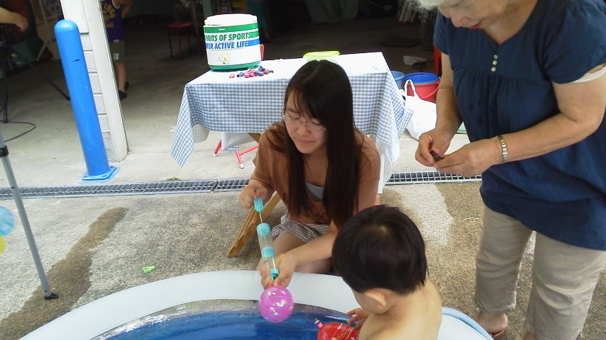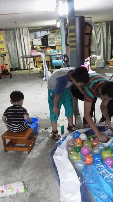 子どもたちが自分たちでヨーヨー釣りの準備をしています。