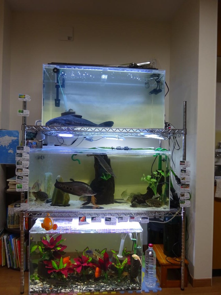 平日・限定的に集会所を地域に開放し、ママさん方が子どもを集会所で遊ばせながら水槽をみて癒されています