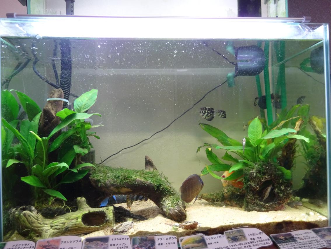 ・ディスカス&小型ドラス&鉄砲魚&ヨシノボリなど10数種類の魚がいます。