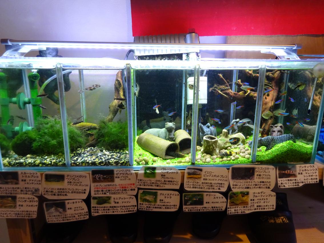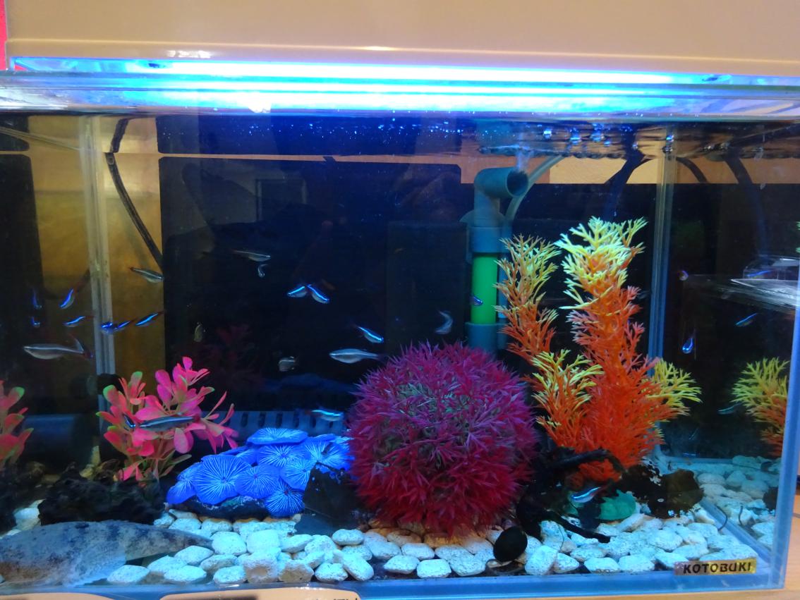 右は、小型プレコを中心にネオンテトラなど可愛いお魚が泳いでいます。