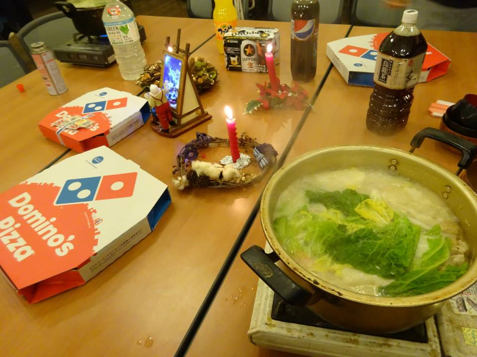 去年は、私が寮に来るまで、会館を温めていなかった(忘れていた??)のでとっても寒い中でのピザだったのですが、ガクブル((;゚Д゚))