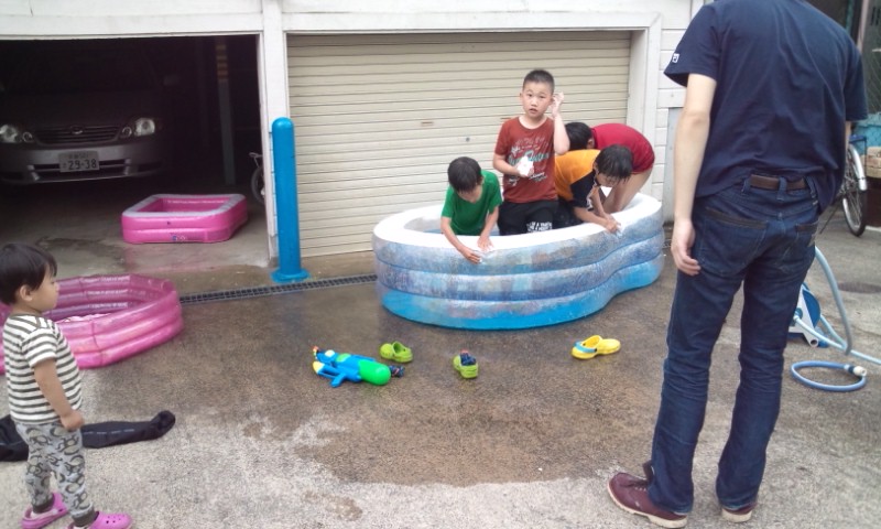 明日のジョイフルクラブでは、水鉄砲大会「ウォーターバトル」を行うのでその準備も行いました。
