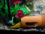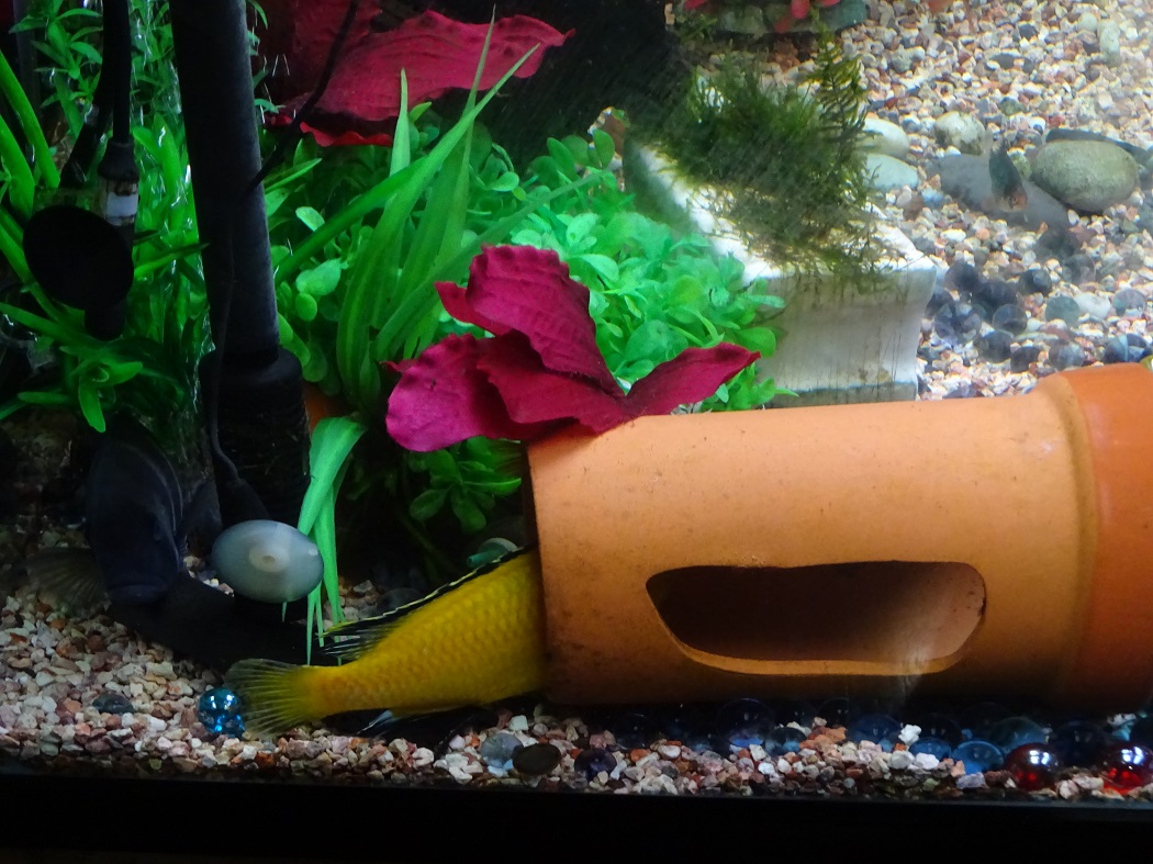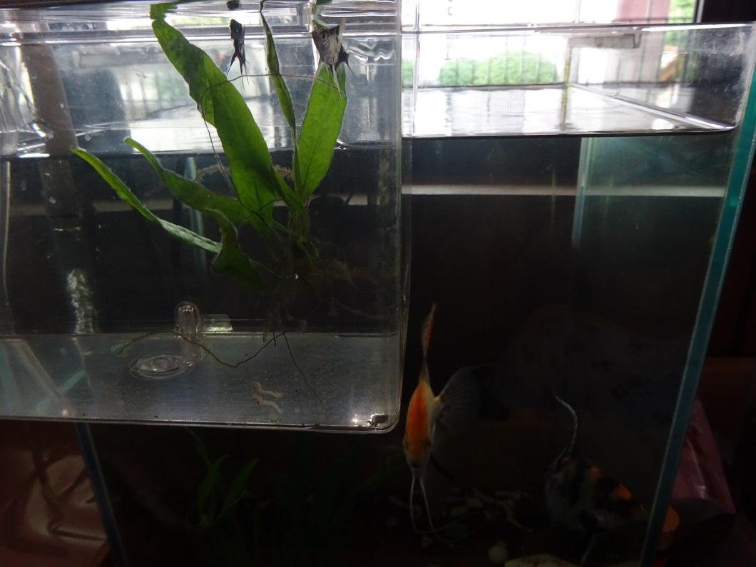 水替えと、人工水草の苔取りと新たな魚を投入しました。