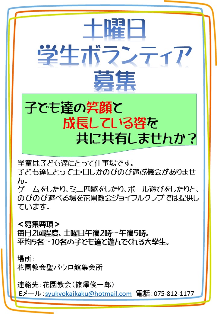 http://kyotohana.blog.shinobi.jp/Entry/914/土曜子ども学生ボランティア募集!