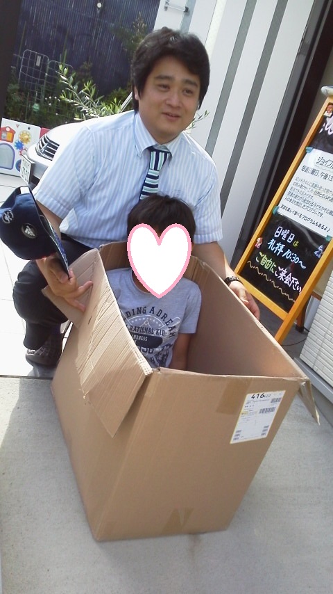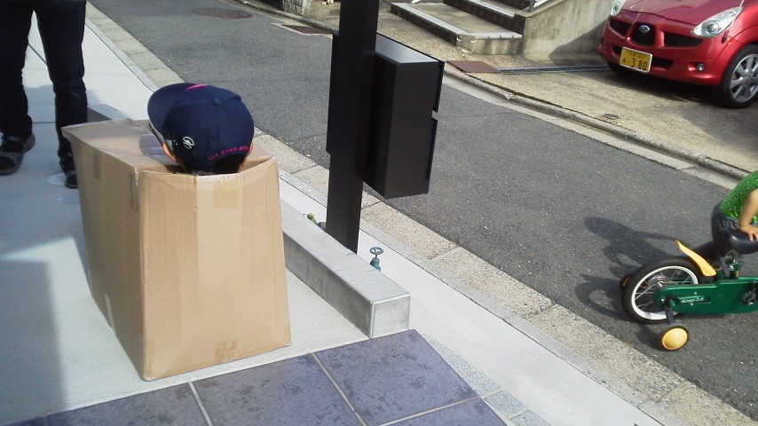 段ボールで日向ぼっこしている子も。。家や学校ではこんなことできないですからね。