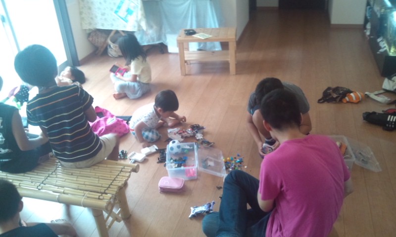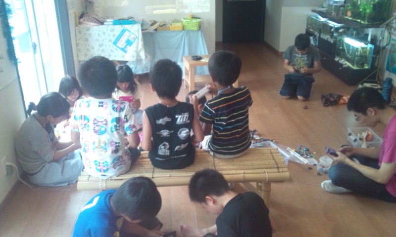 虫取り後は、ゲームやミニ四駆で大はしゃぎ。