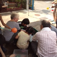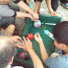 子ども達はヨーヨーを水風船の代わりにして投げ合っていました。完全に使い方を間違っています(笑