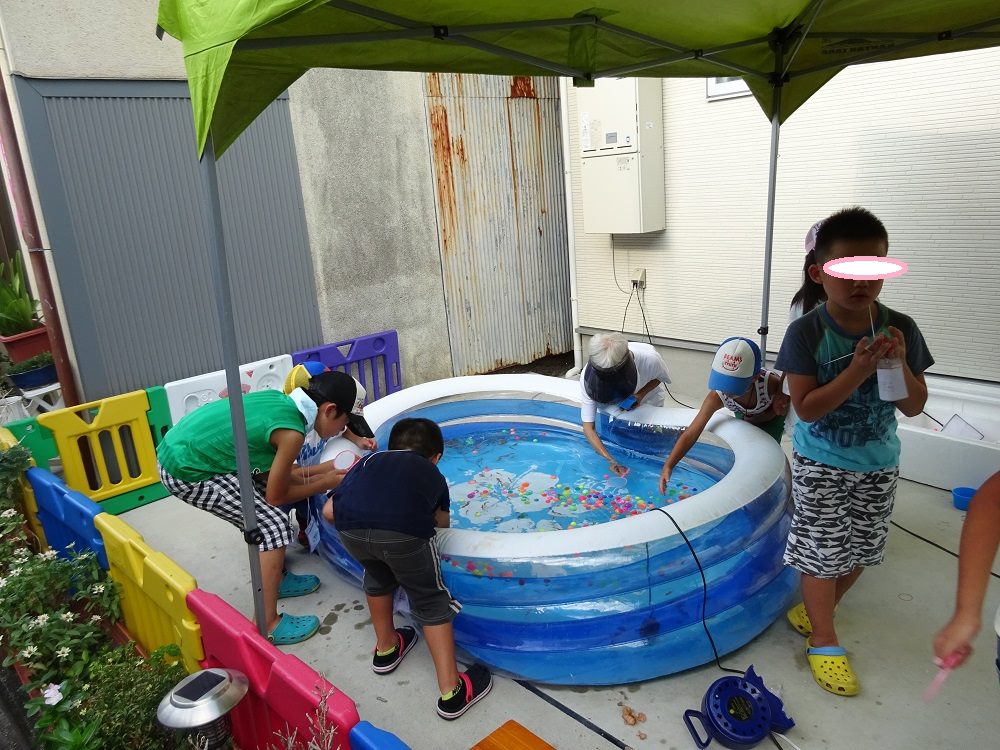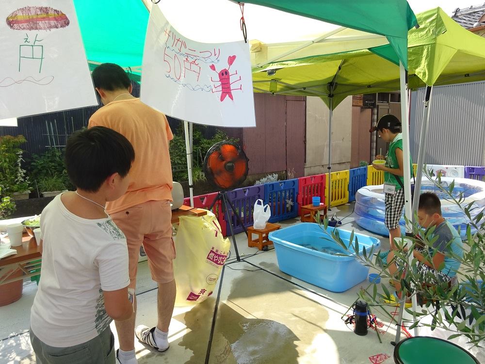 自分の店(かき氷、宝探し、ヨーヨー釣り、焼きそば、ホットドッグ、射的、スーパーボール&金魚すくい、ザリガニ釣りなど)の