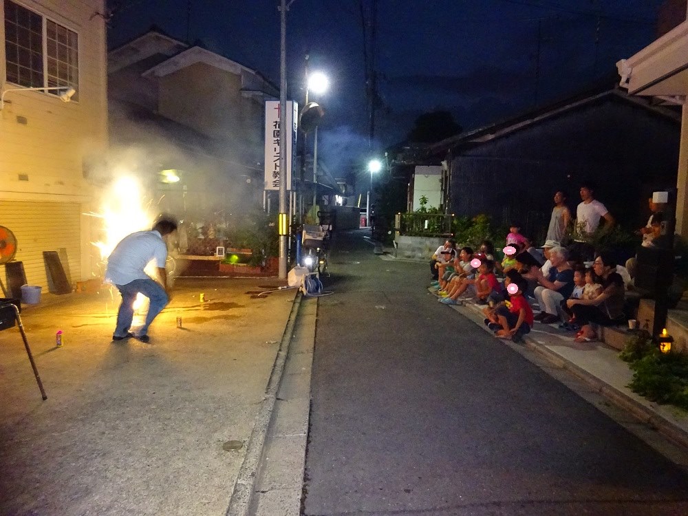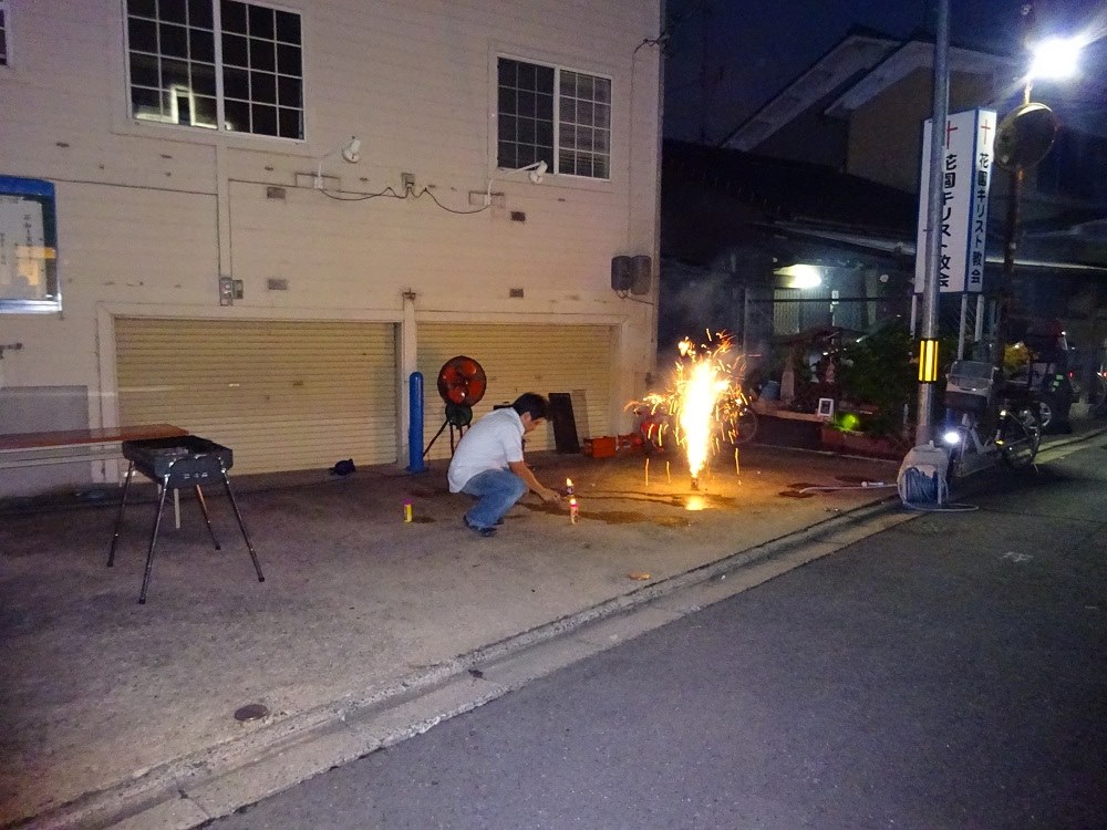 据え置き花火の連続発火。
