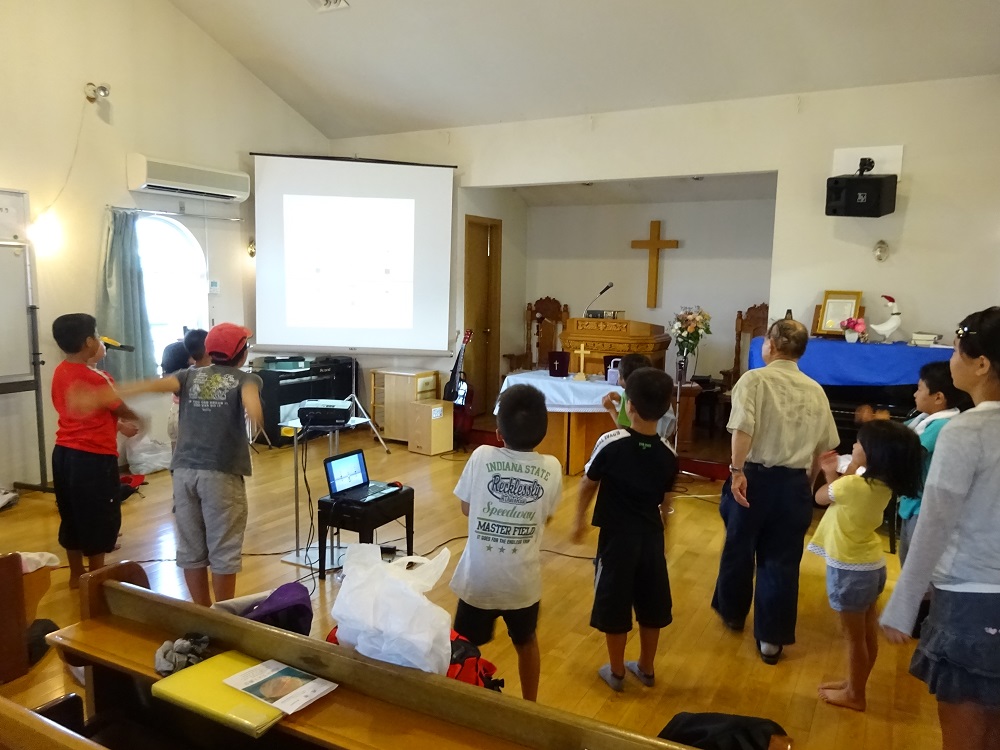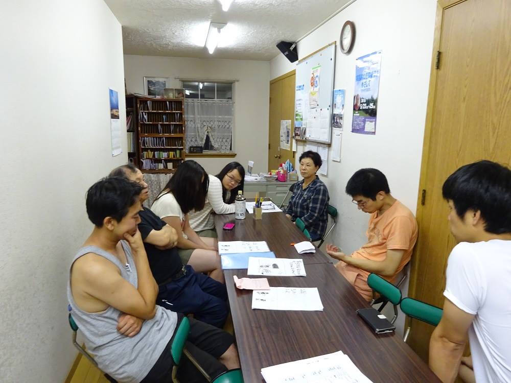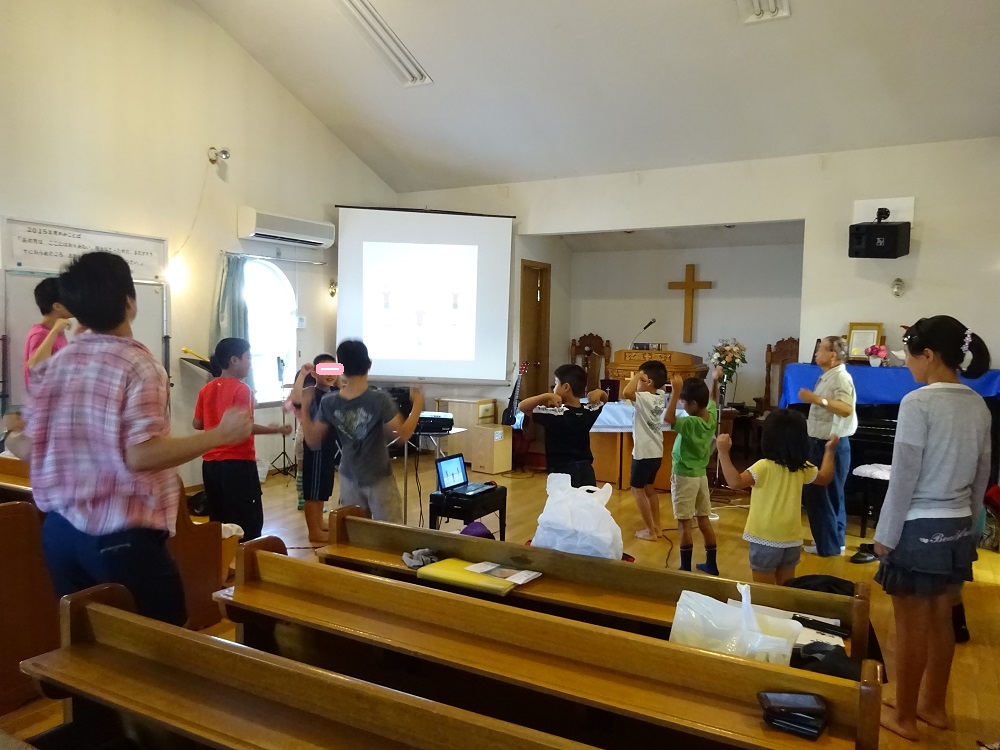 布団をたたみ、ラジオ体操を行った後、静まって聖書に親しむ時を持ちました。