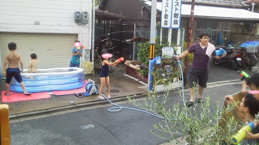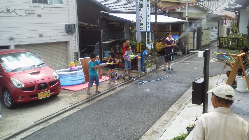 家から自分の自慢のウォーターガンを持ってくる子も。。