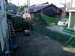 10m×4mのネットを蓋の支柱にあった棒を買ってきて、、、というよりは自分で作って、張り付けていきます。