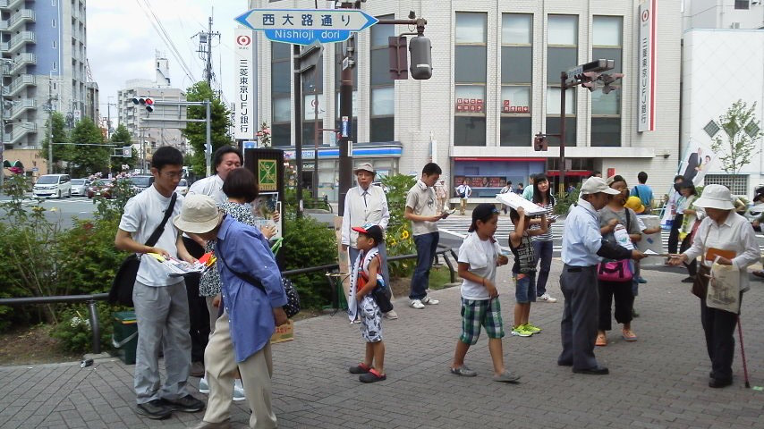学生たちも慣れないチラシを通行人、丁寧に配布してくれました。
