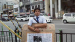 駅前と向かいの交差点の2か所で街頭募金を行います。