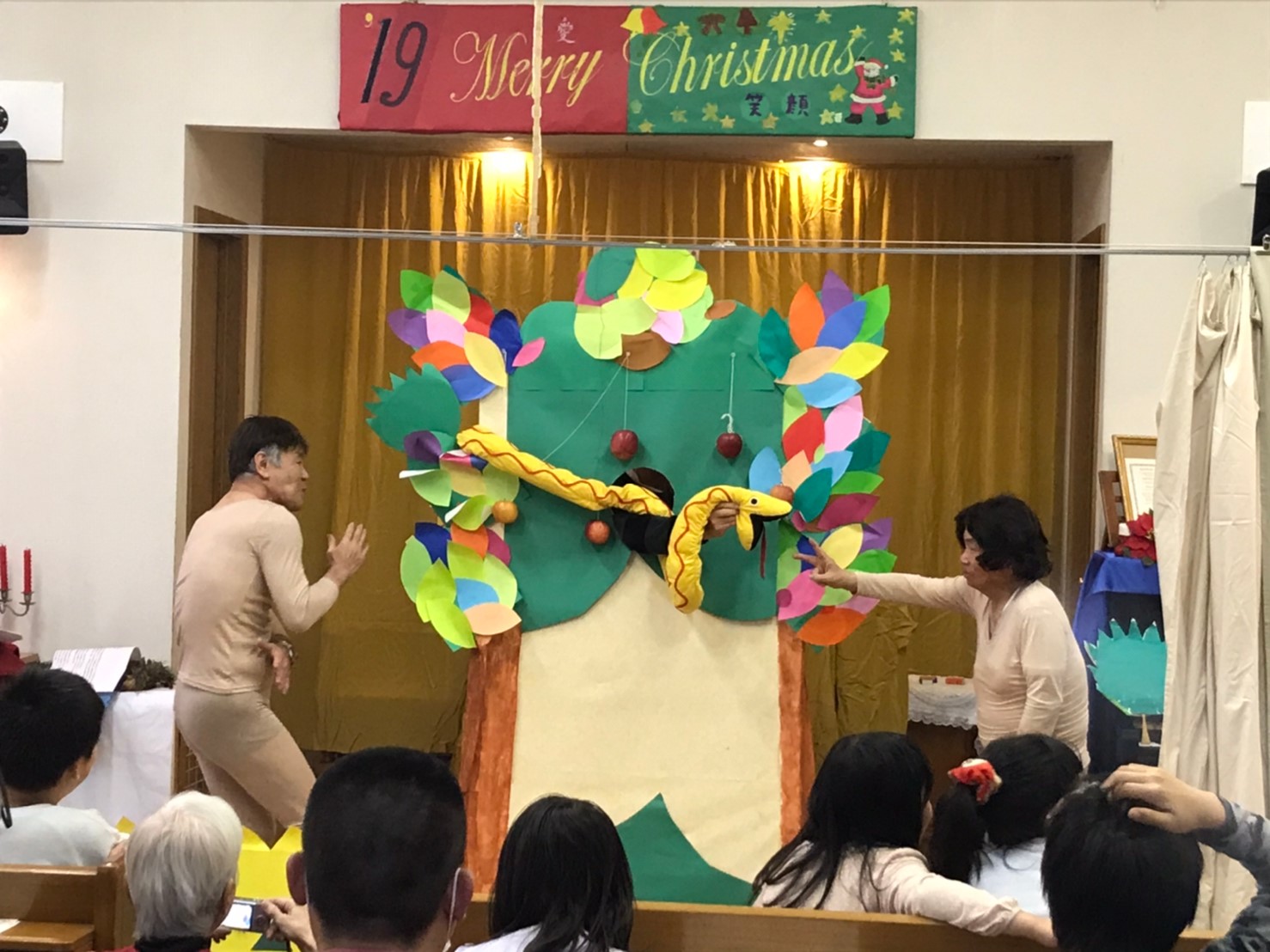 壮年会は、NG寸前!? 進撃の巨人風?「アダムとエバ物語」